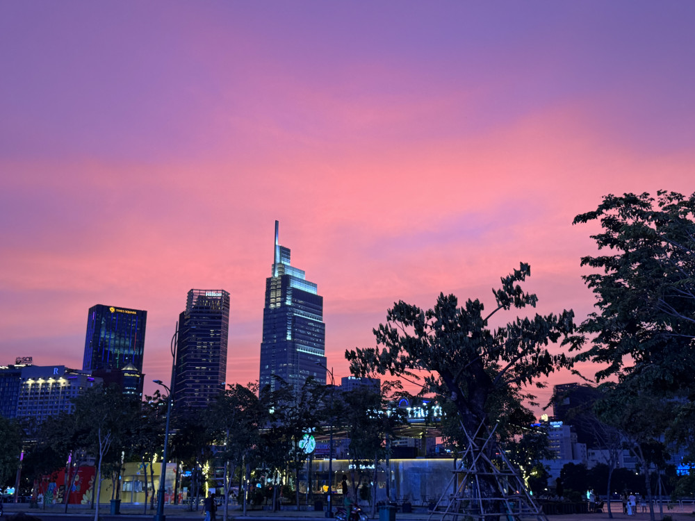 "호치민시에서의 완벽한 결말: 커피와 일몰."